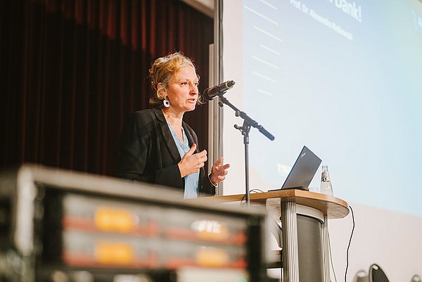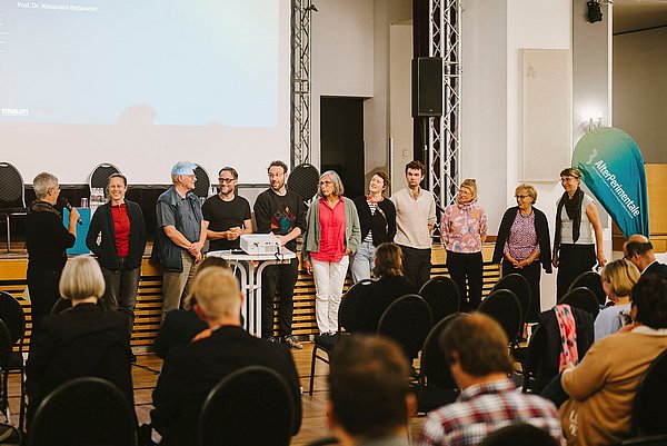 Hier knüpfte Prof. Dr. Alexandra Retkowski, der BTU Cottbus-Senftenberg mit der Alterperimentale an, die als Transferbündnis Alter, Peripherie und Experiment im Titel verknüpft und en travers der Disziplinen darauf zielt, das Leben älterer Menschen im ländlichen Raum nachhaltig zu verbessern. Retkowski betonte dabei den Fokus des Projekts auf eine neue Kultur der Beteiligung von Seniorinnen und Senioren. Als Bündnis aus Wissenschaft und regionaler Praxis wird bei der Alterperimentale ein kreatives Zusammendenken und gemeinsames produktiv Handeln über die verschiedenen beteiligten Disziplinen hinweg forciert. Dabei gab die Soziologin dem Publikum den Denkanstoß mit, dass Innovatives nicht immer eine bahnbrechende Neuerfindung sein muss. Oftmals ist es auch eine geschickte Kombination von Bekanntem und neuen Ansätzen, die eine stark erlebbare Veränderung ausmachen kann.