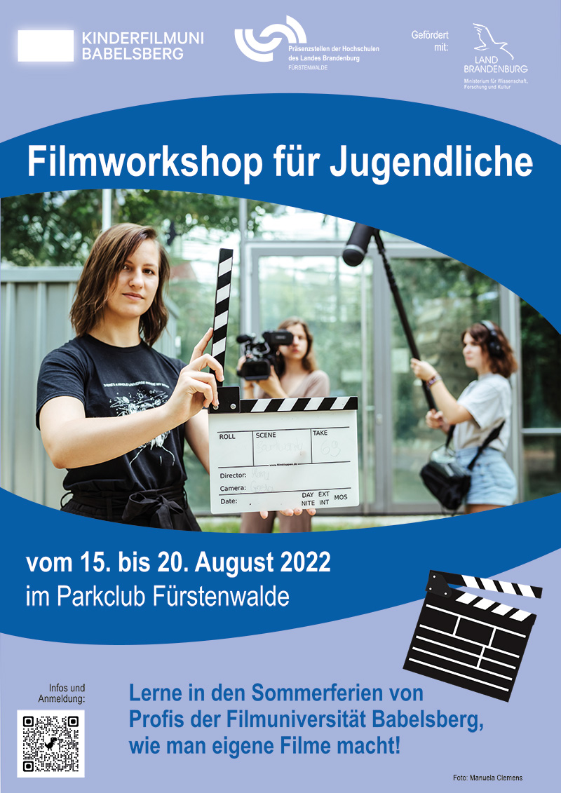 Bei dem sechstätigen Filmworkshop im Parkclub Fürstenwalde für Jugendliche zwischen 12 und 17 Jahren setzt ihr euer eigenes, kleines Filmprojekt um – von der Idee über den Dreh bis hin zum fertigen Film!